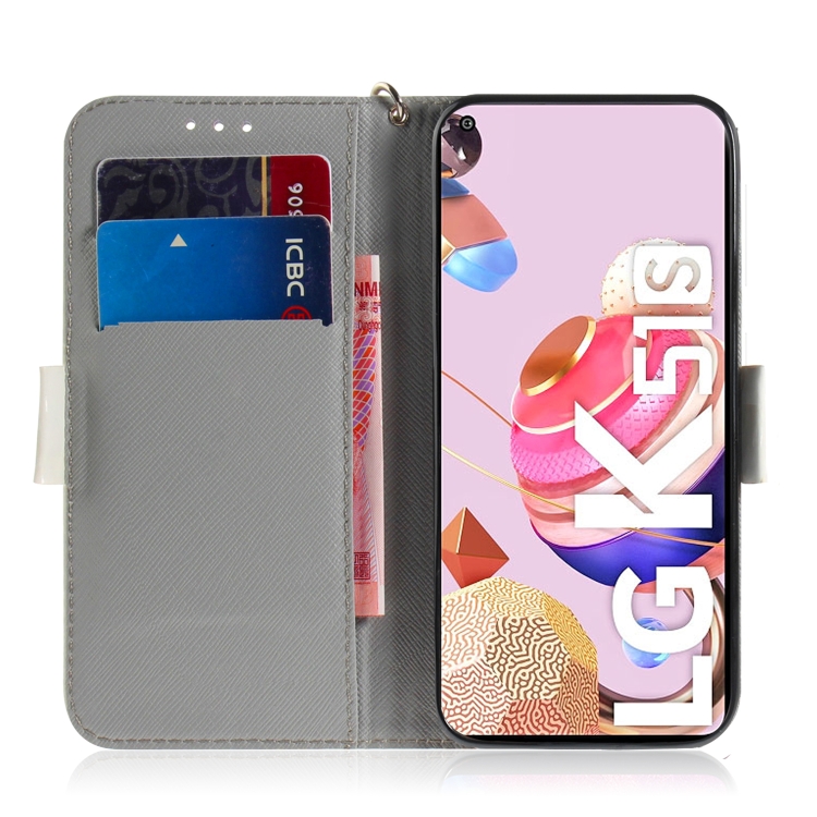 Funda de Cuero Abatible para LG K41S / K51S con Dibujo 3D, Soporte, Ranuras y Cordón (Flor de Acuarela)