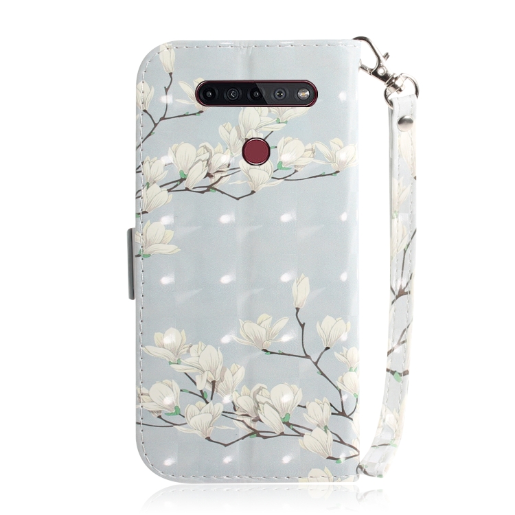 Funda de Cuero Abatible Horizontal para LG K41S K51S con Dibujo 3D Soporte Ranuras Tarjetas Billetera Cordón (Magnolia)