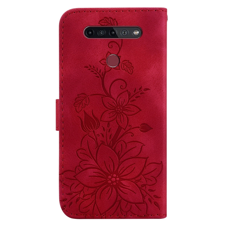 Funda para Teléfono LG K41S K51S Cuero con Relieve Lily (Rojo)