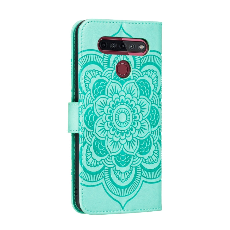 Funda Cuero PU Mandala para LG K41S / K51S con Tapa Horizontal, Soporte, Ranuras y Cordón (Verde)