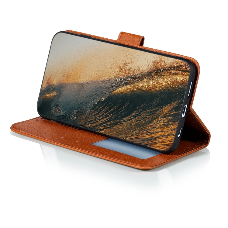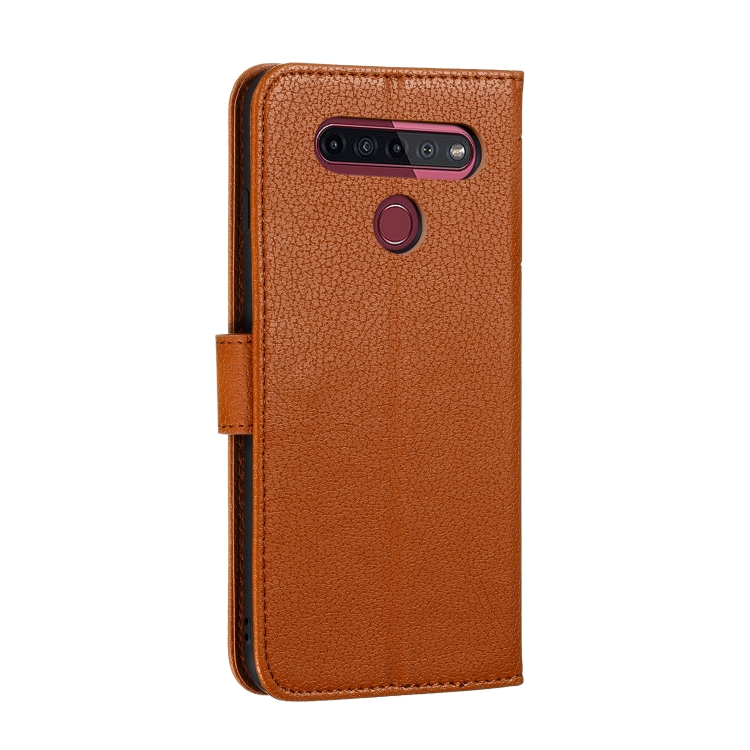 Funda de Cuero LG K41S K51S con Tapa Horizontal, Billetera, Soporte y Ranuras para Tarjetas (Marrón)