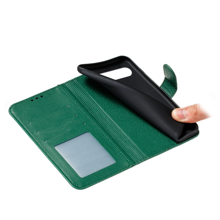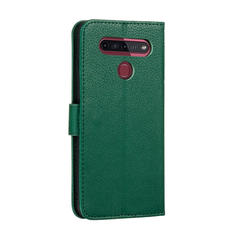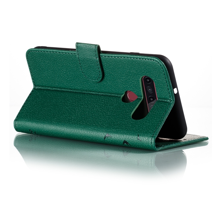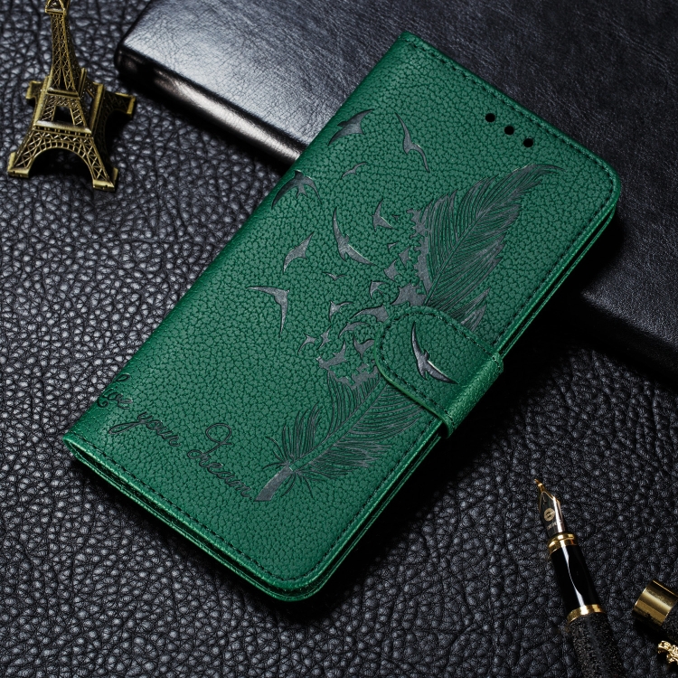 Funda de Cuero LG K41S K51S con Patrón de Plumas, Tapa Horizontal, Billetera y Soporte (Verde)