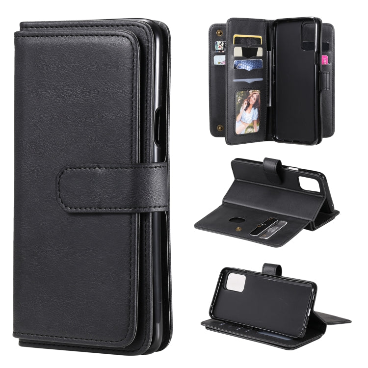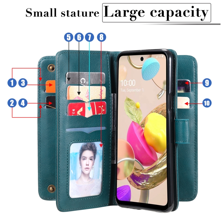 Funda Cuero para LG K42 con Hebilla de Cobre, 10 Ranuras, Soporte y Marco de Fotos (Negro)