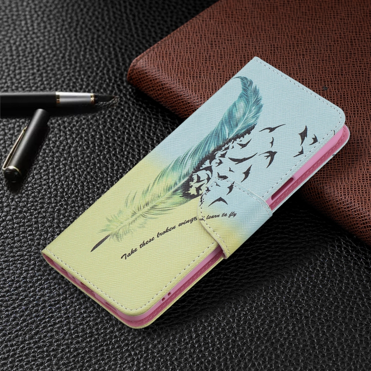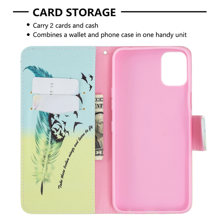 Funda de Cuero Horizontal para LG K42 con Soporte, Ranuras para Tarjeta y Billetera (Pluma)