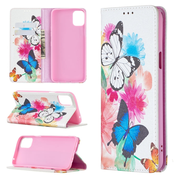 Funda de Cuero PU para LG K42 con Patrón Invisible, Soporte, Tragamonedas y Billetera (Dos Mariposas)