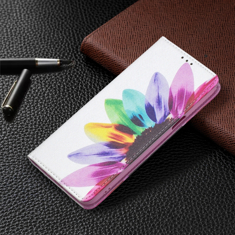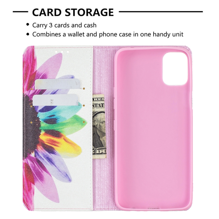Funda de Cuero PU para LG K42 con Patrón Invisible, Soporte, Tragamonedas y Billetera (Flor de Sol)