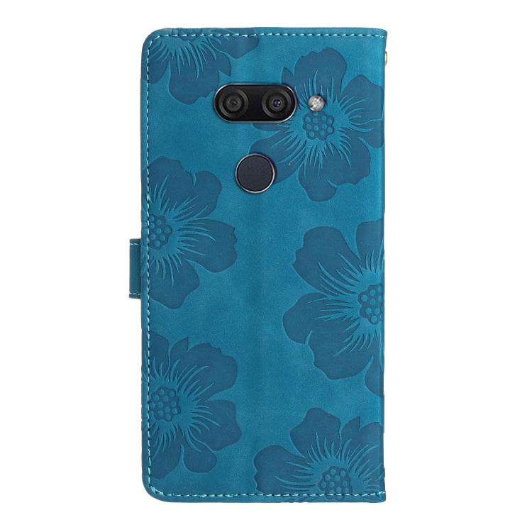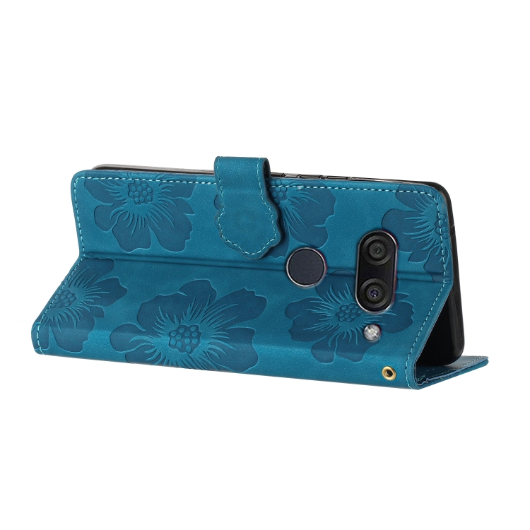 Funda de Cuero para LG K50 con Estampado de Flores en Relieve (Azul)