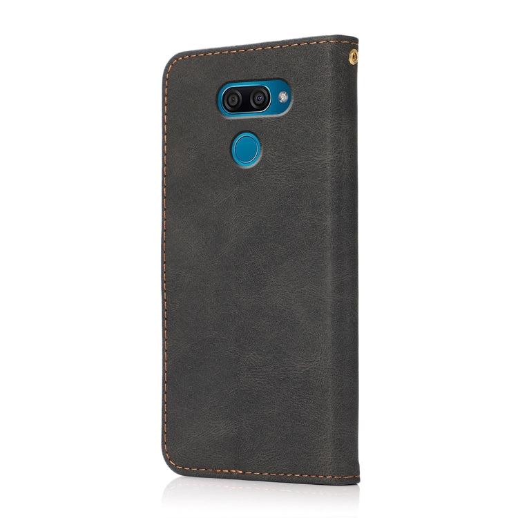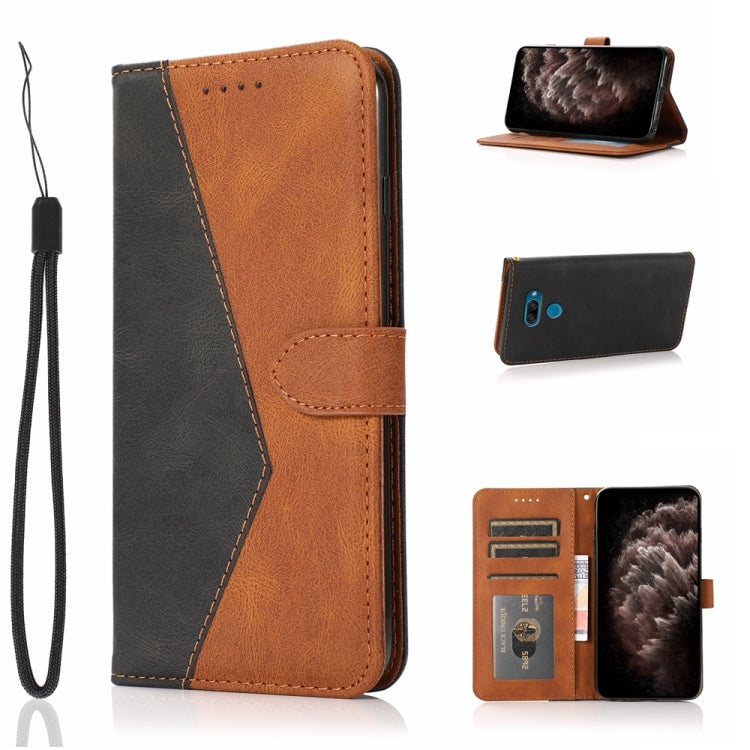 Estuche para Teléfono LG K50 / Q60 de Cuero con Costuras de Dos Colores (Marrón Negro)