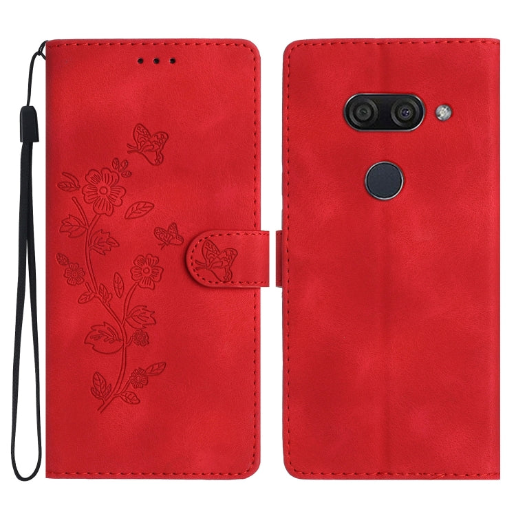 Funda de Cuero para LG K50 / Q60 con Estampado de Mariposas y Flores (Rojo)