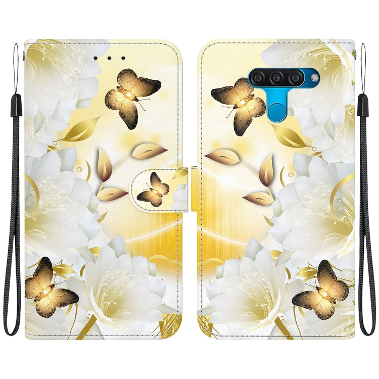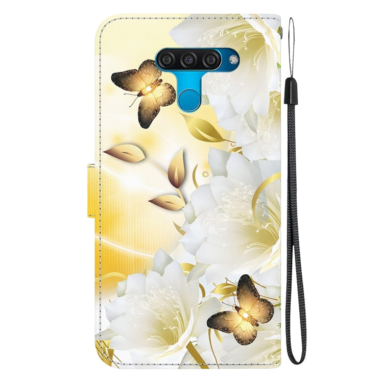 Funda para Teléfono LG K50 / Q60 Cuero con Dibujo Coloreado y Textura de Cristal (Epiphyllum Mariposa Dorada)