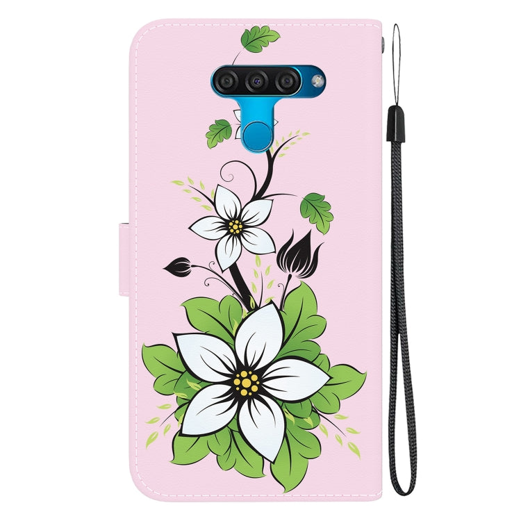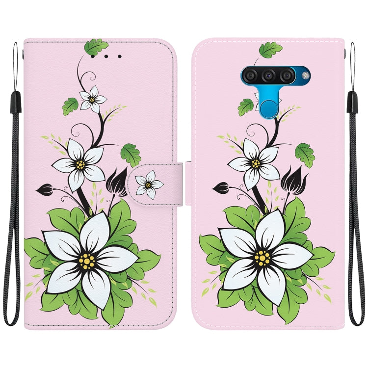 Funda para Teléfono LG K50 / Q60 de Cuero con Dibujo Coloreado y Textura de Cristal (Lirio)