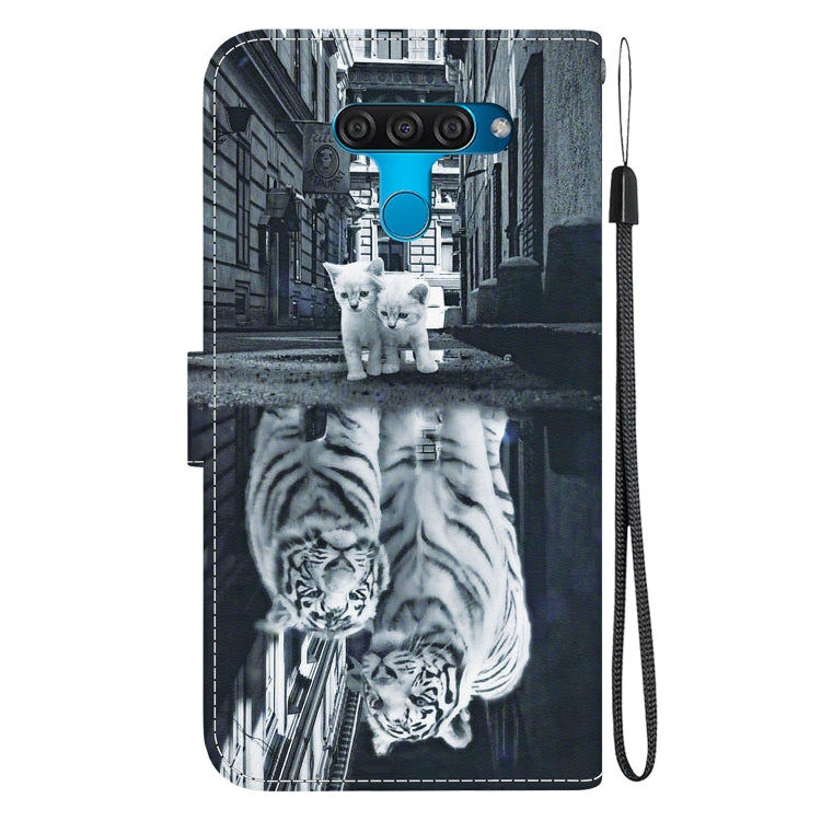 Funda para LG K50 / Q60 de Cuero con Dibujo Coloreado y Textura de Cristal (Reflejo de Tigre Gato)