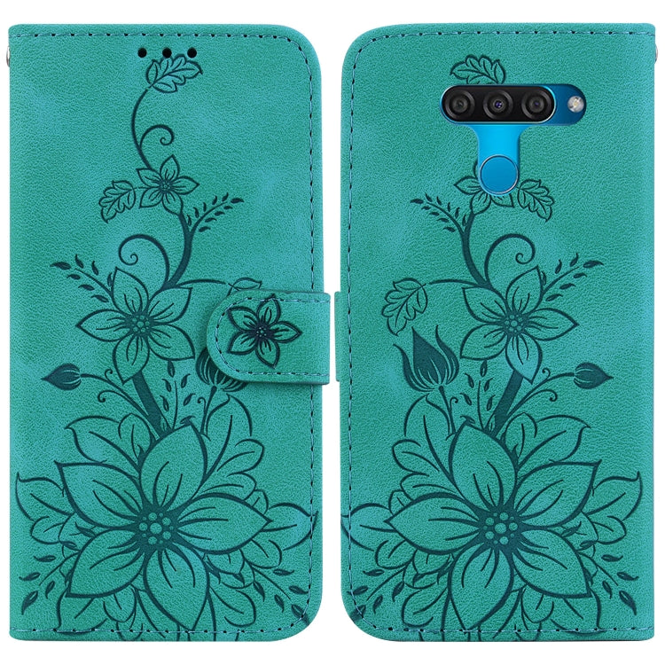 Funda para Teléfono LG K50 / Q60 de Cuero con Relieve Lily (Verde)