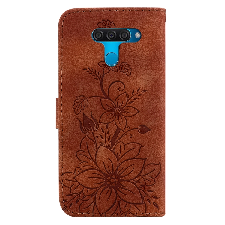 Funda de Cuero en Relieve para LG K50 / Q60 Lily para Teléfono (Marrón)