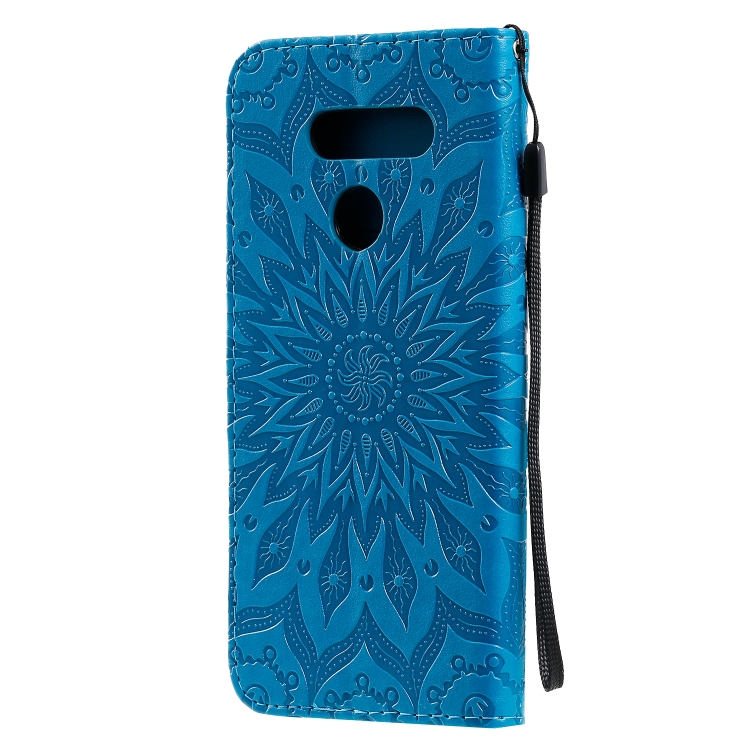 Funda Cuero PU para LG K50S con Tapa Horizontal, Soporte, Ranuras para Tarjetas y Cordón (Azul)