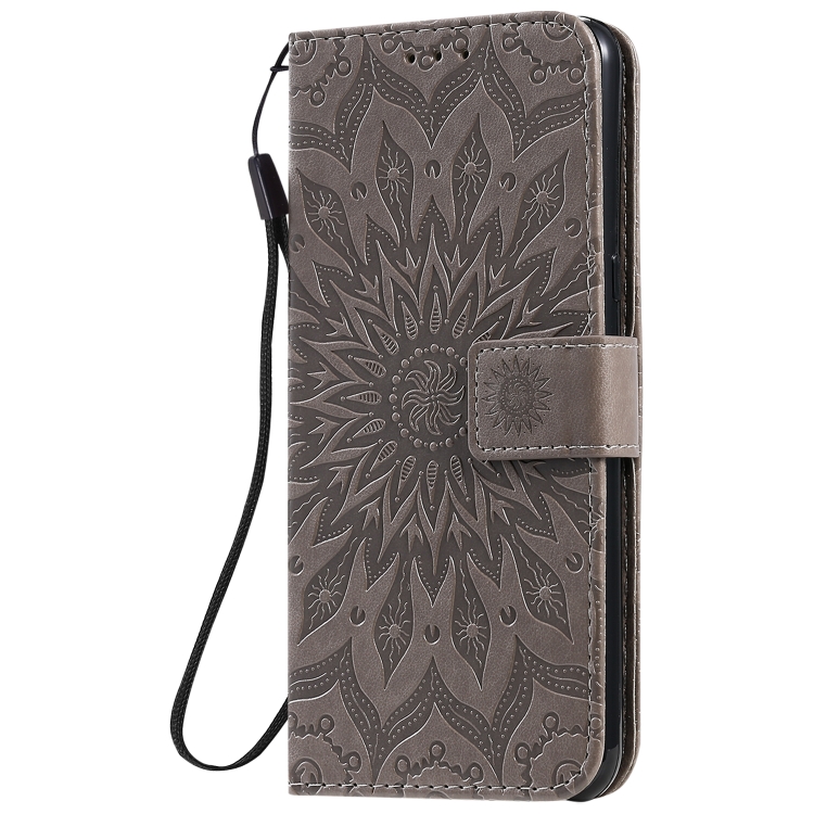 Funda Cuero PU para LG K51 con Tapa Horizontal, Soporte, Ranuras para Tarjetas, Billetera y Cordón (Gris)
