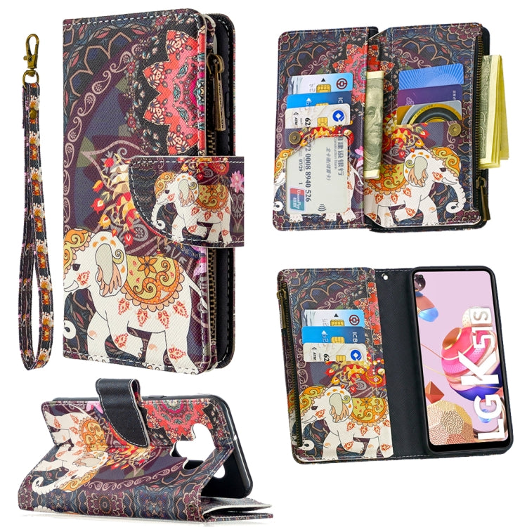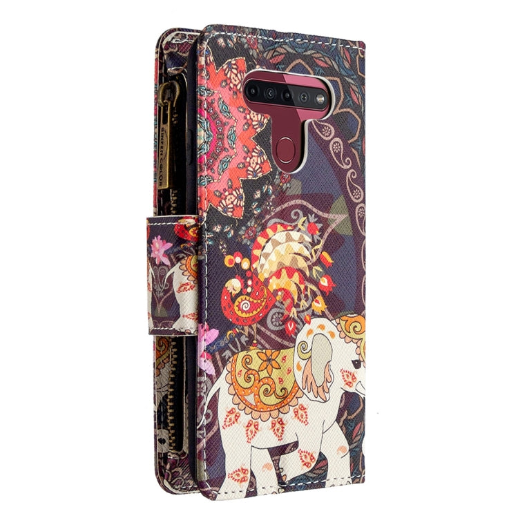 Funda de Cuero para LG K51 con Patrón de Elefantes de Flores, Tapa Horizontal, Soporte y Ranuras para Tarjetas