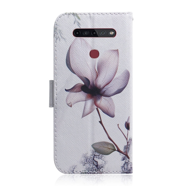 Funda de Cuero Abatible Horizontal para LG K51S con Dibujo Coloreado, Soporte, Ranuras para Tarjetas y Billetera (Flor de Magnolia)