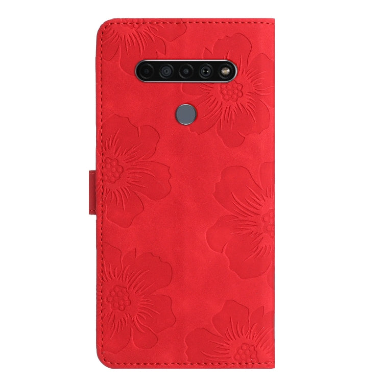 Funda de Cuero para LG K51S con Estampado de Flores en Relieve (Rojo)
