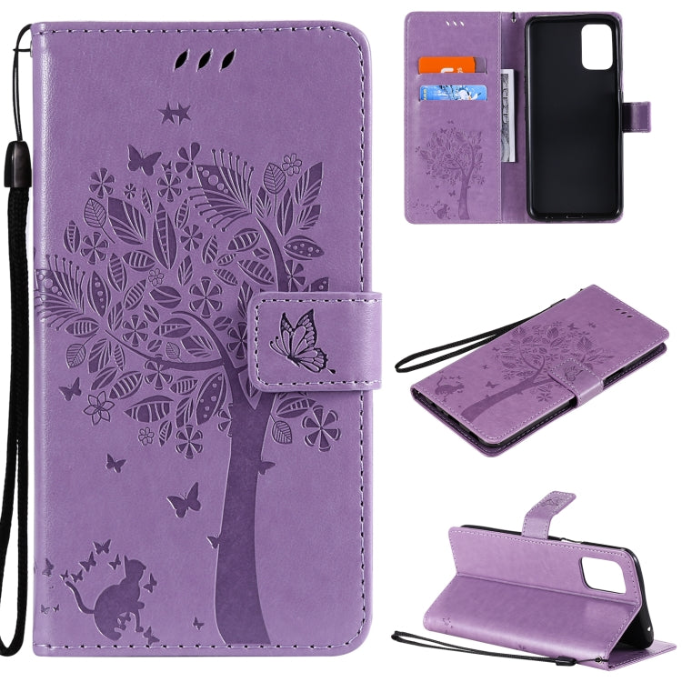 Funda Cuero PU para LG K52 con Soporte, Ranuras para Tarjetas y Cordones (Púrpura Claro)