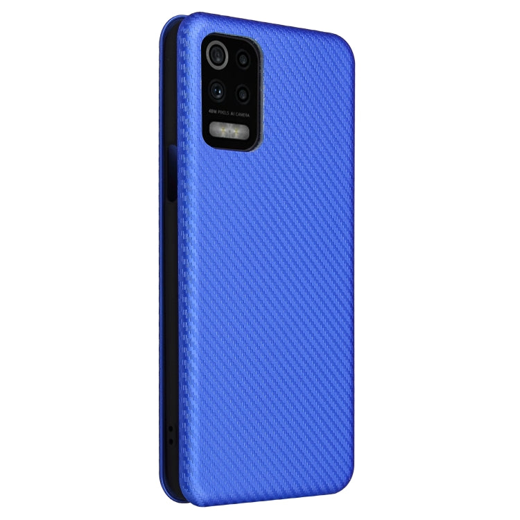 Funda Cuero LG K52 K62 con Tapa Magnética Horizontal Textura Fibra de Carbono TPU PC PU Ranura Tarjeta (Azul)