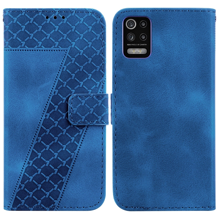 Funda de Cuero En Relieve en Forma de 7 para LG K52 / K62 / Q52 (Azul)