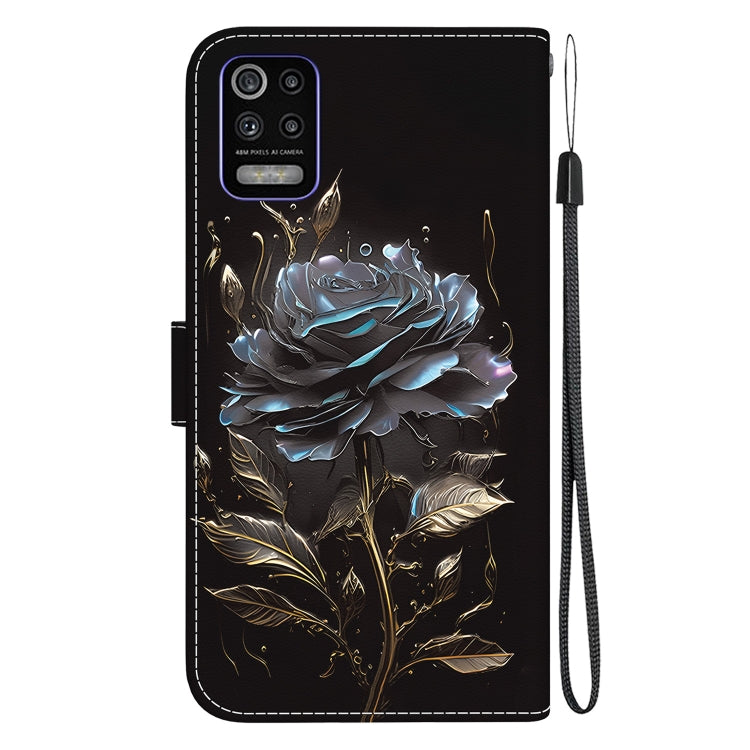 Funda de Cuero para LG K52 / K62 / Q52 con Dibujo Coloreado y Textura de Cristal (Rosa Negra)