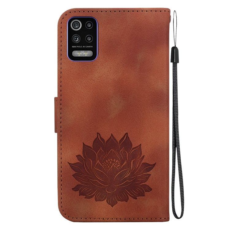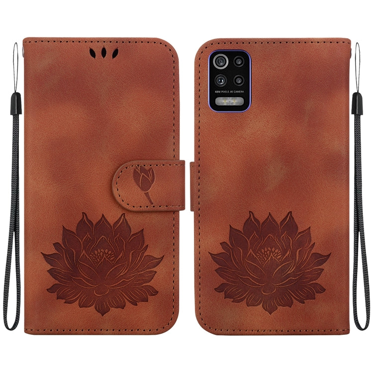 Funda para Teléfono LG K52 K62 Q52 Cuero con Relieve de Loto (Marrón)