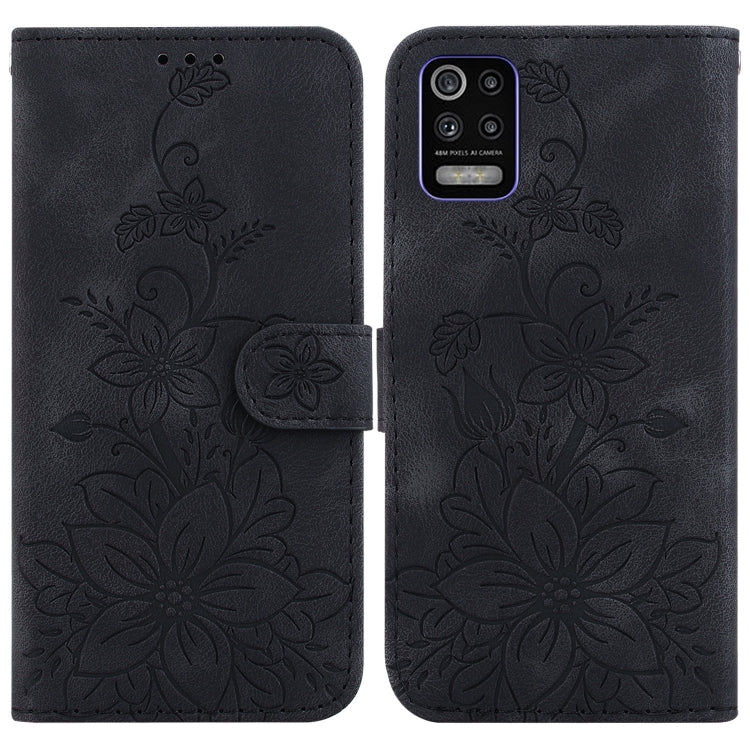 Funda para Teléfono LG K52 K62 Q52 Cuero con Relieve Lily (Negro)