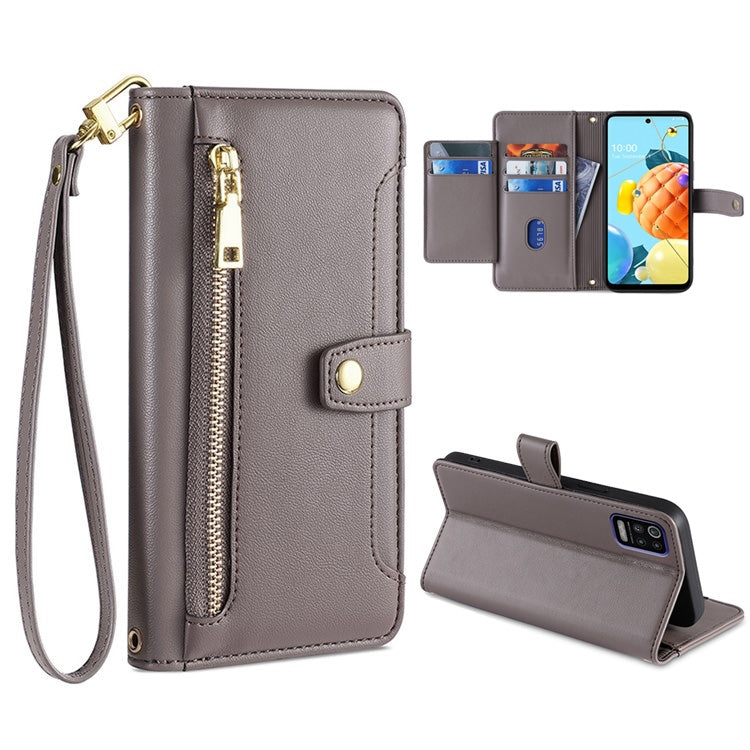Funda de Cuero para Teléfono LG K52 Sheep Texture Cross-Body con Zipper (Gris)