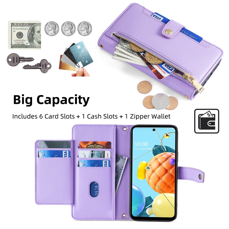 Funda de Cuero para Teléfono LG K52 Sheep Texture Cross-Body Zipper Wallet (Púrpura)