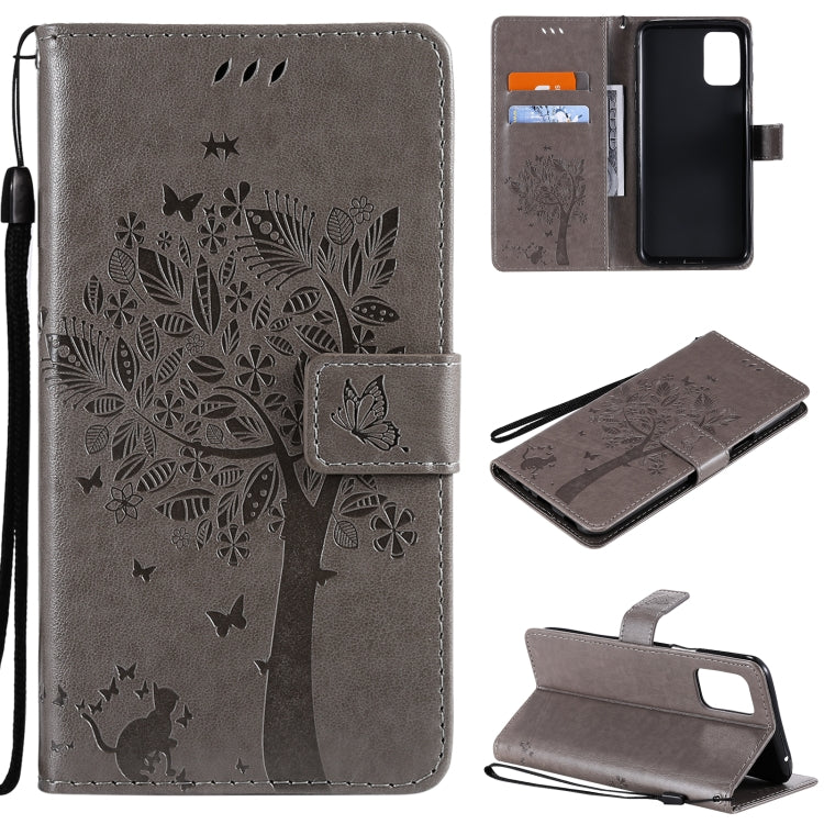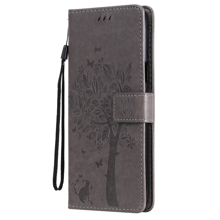 Funda de Cuero PU para LG K52 con Soporte, Ranuras para Tarjetas y Cordones (Gris)