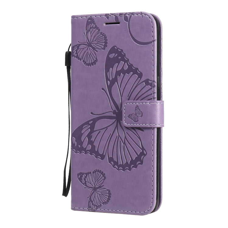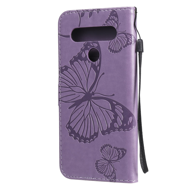 Funda de Cuero para LG K61 3D Mariposa en Relieve con Tapa Horizontal, Soporte, Ranura para Tarjeta, Billetera y Cordón (Púrpura)