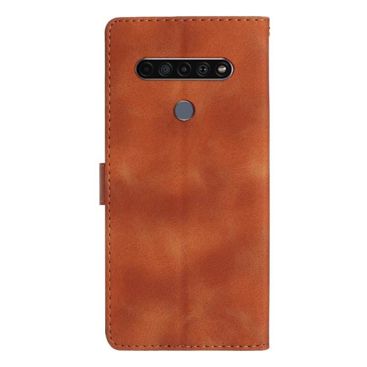 Funda de Cuero para LG K61 con Flor Mariposa y Relieve Patrón (Marrón)