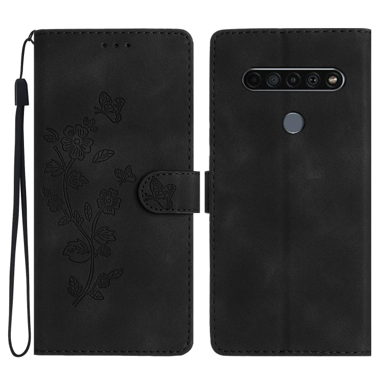 Funda de Cuero para LG K61 con Flor y Mariposa en Relieve (Negro)
