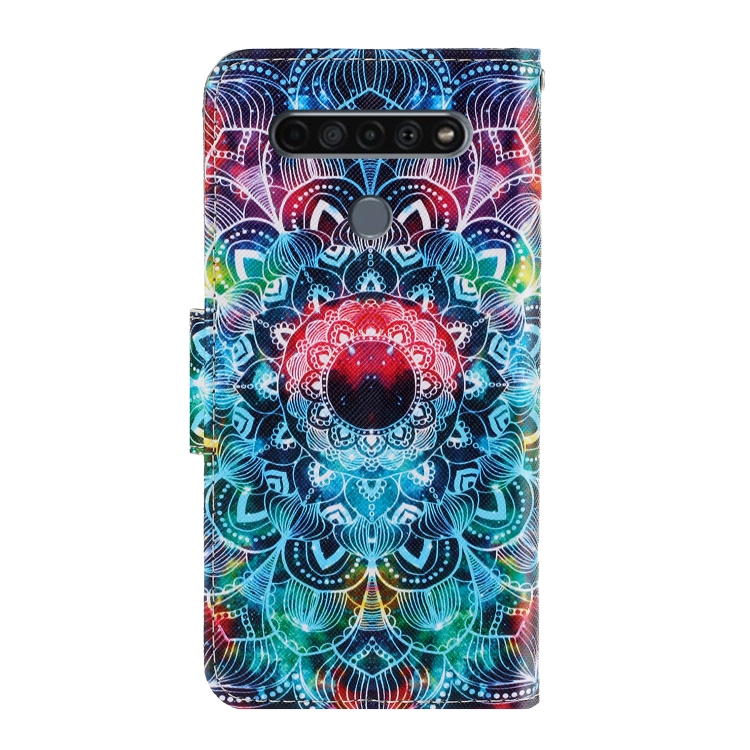 Funda de Cuero Abatible Horizontal para LG K61 con Soporte, Ranura para Tarjeta y Billetera (Mandala)