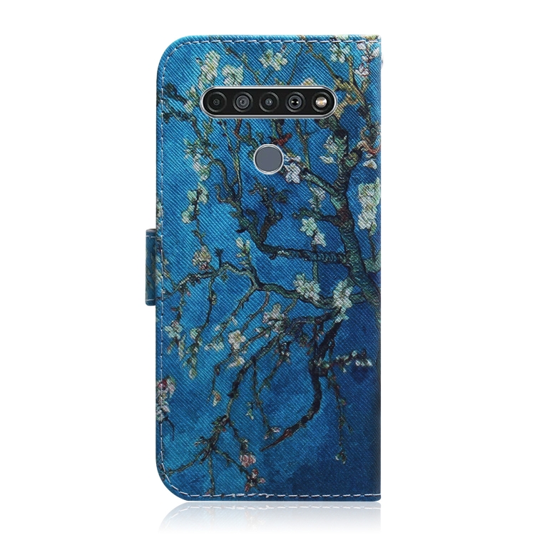 Funda de Cuero abatible horizontal para LG K61 con Soporte, Ranuras para Tarjetas y Billetera (Flor de Albaricoque)