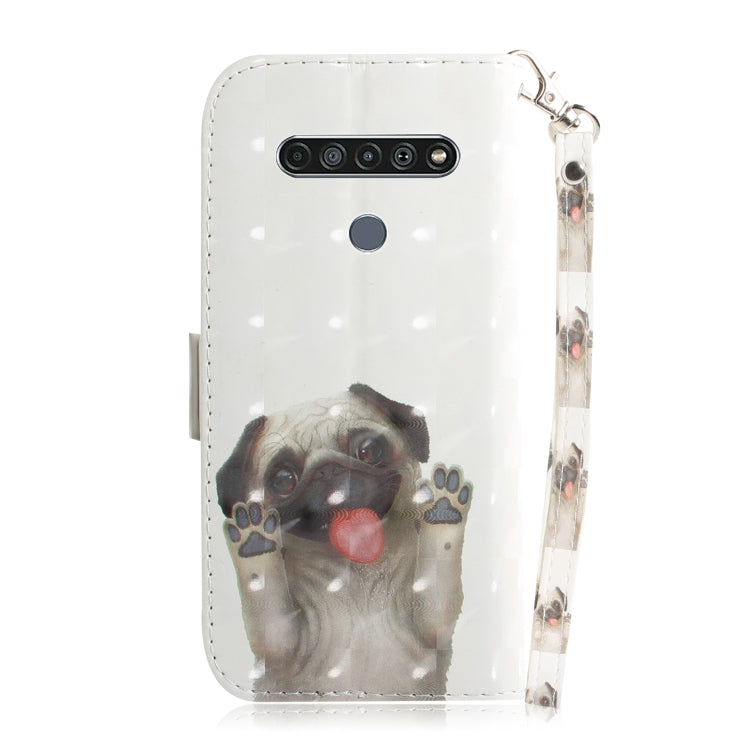 Funda de Cuero para LG K61 con Tapa Horizontal, Dibujo 3D, Soporte, Ranuras y Cordón (Pug)