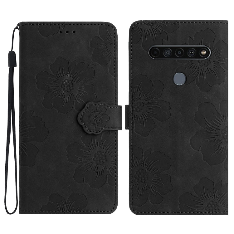 Funda de Cuero para LG K61 con Estampado de Flores en Relieve (Negro)