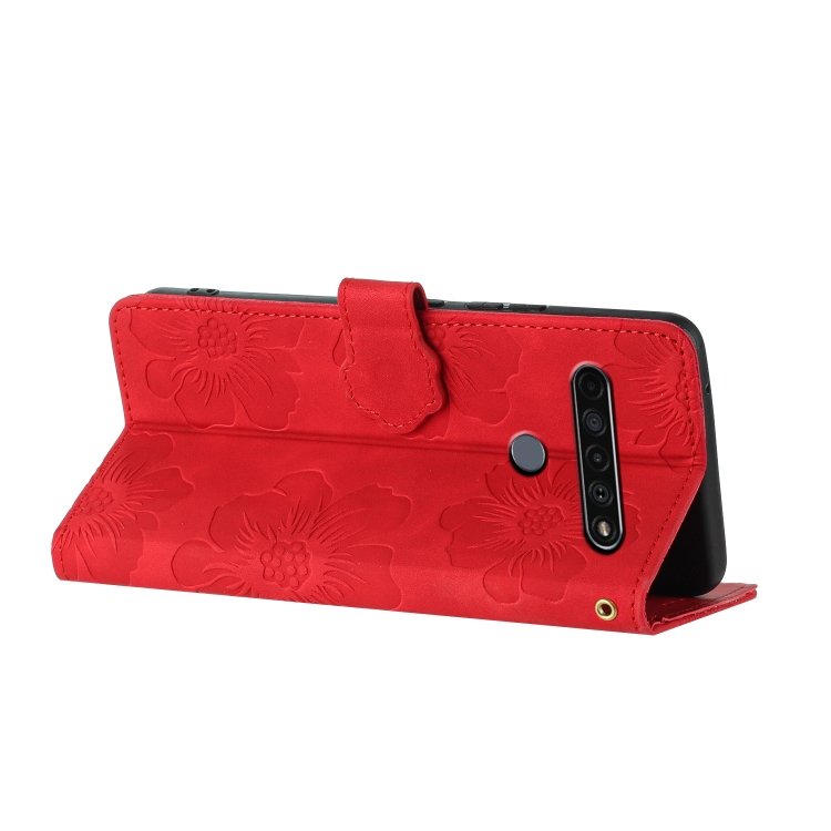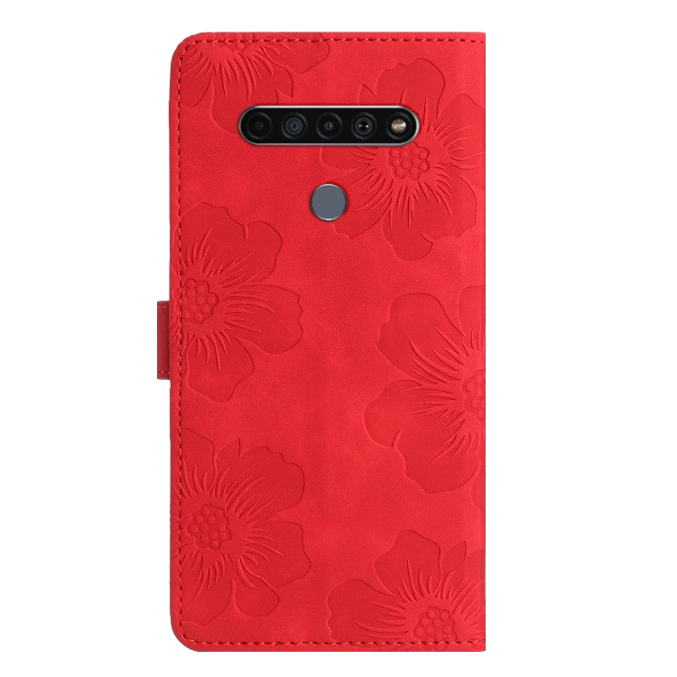 Funda de Teléfono LG K61 Cuero con Estampado de Flores en Relieve (Rojo)