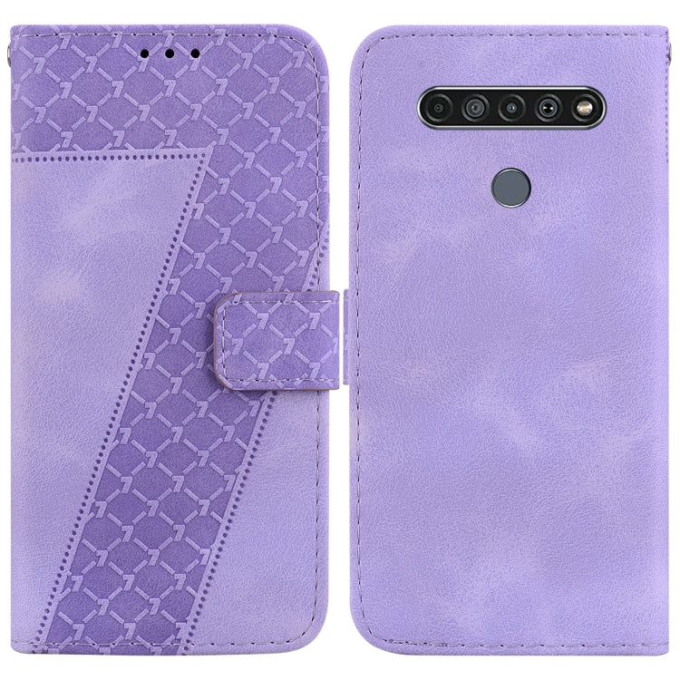 Funda de Cuero En Relieve en Forma de 7 para LG K61 (Púrpura)