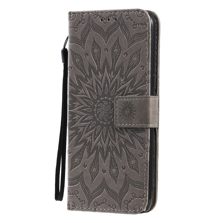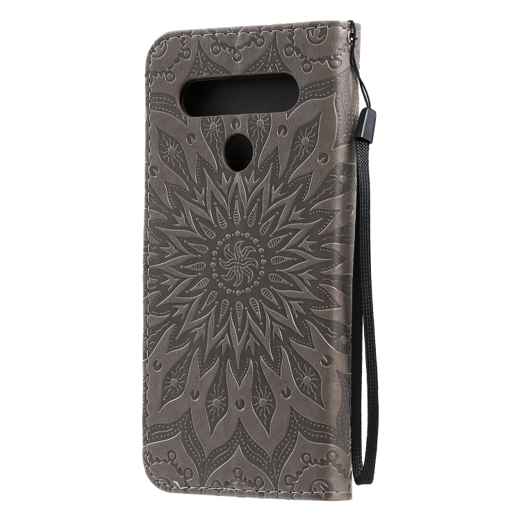 Funda de Cuero PU para LG K61 con Patrón de Girasol, Tapa Horizontal, Soporte, Ranuras para Tarjetas y Billetera (Gris)