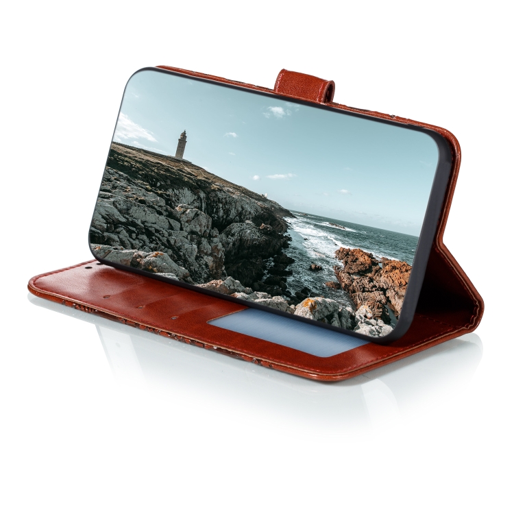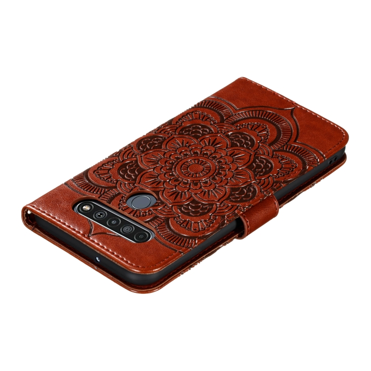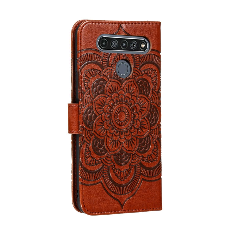 Funda Cuero PU para LG K61 Mandala con Tapa Horizontal, Soporte, Ranuras y Cordón (Marrón)