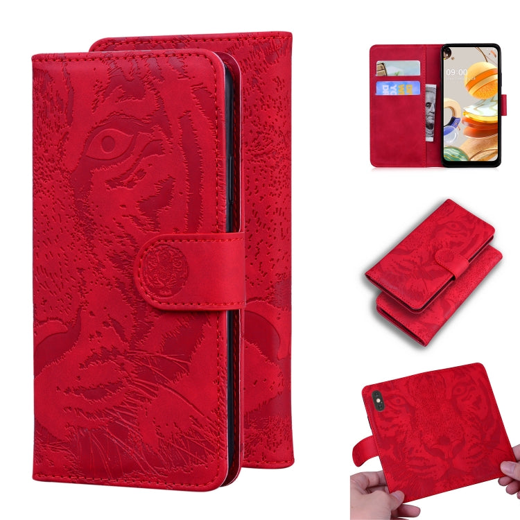 Funda de Cuero para LG K61 Tiger con Tapa Horizontal, Soporte, Ranuras para Tarjetas y Billetera (Rojo)
