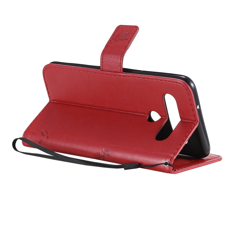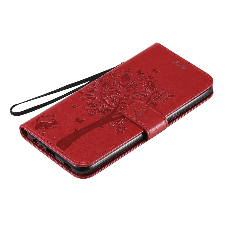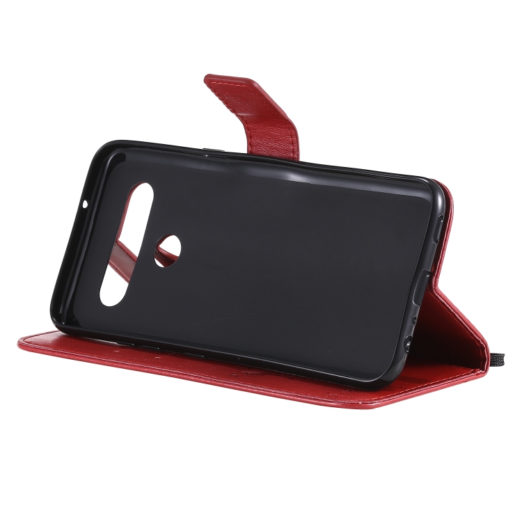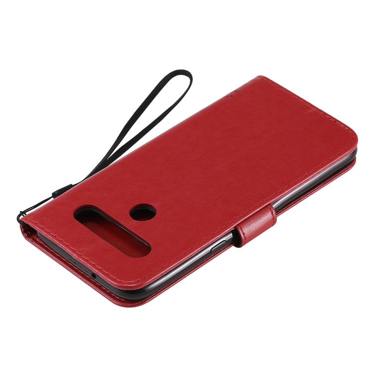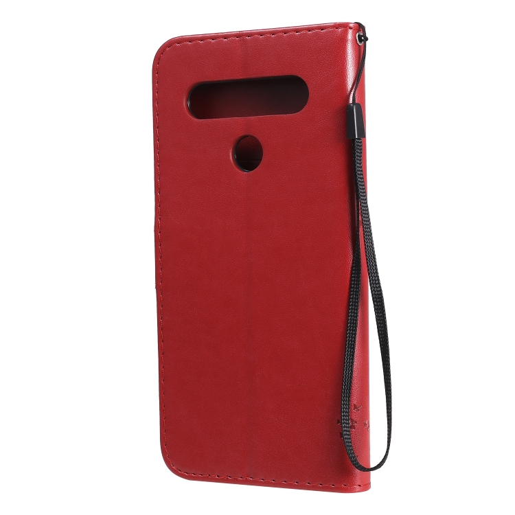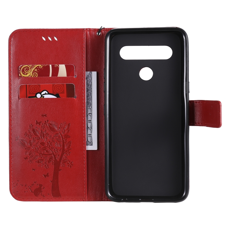 Funda de Cuero para LG K61 Tree & CAT con Tapa Horizontal, Soporte, Ranuras para Tarjetas, Billetera y Cordón (Rojo)