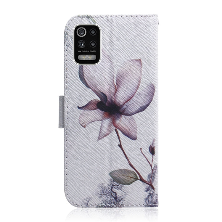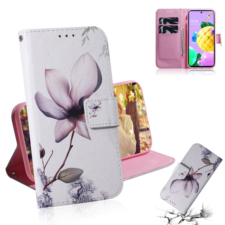 Estuche de Cuero Abatible Horizontal para LG K62 K52 Q52 con Soporte, Ranuras y Billetera (Flor de Magnolia)