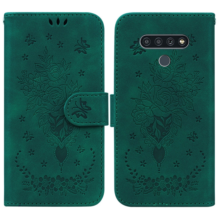 Funda de Cuero para LG K71 Stylo 6 con Relieve de Mariposa (Verde)