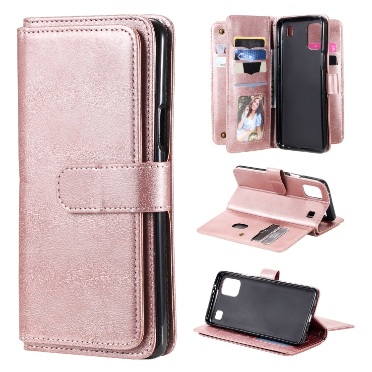 Funda de Cuero para LG K92 con Hebilla Magnética, Soporte, Billetera y Marco de Fotos (Oro Rosa)