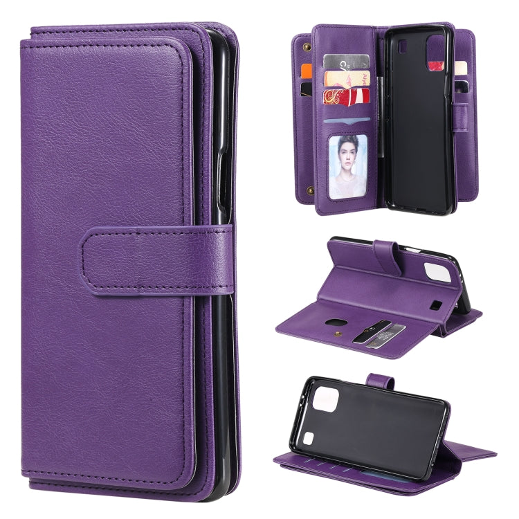Funda Multifuncional LG K92 con Hebilla Magnética Horizontal, Caja de Cuero, 10 Tarjetas, Billetera y Soporte (Púrpura)