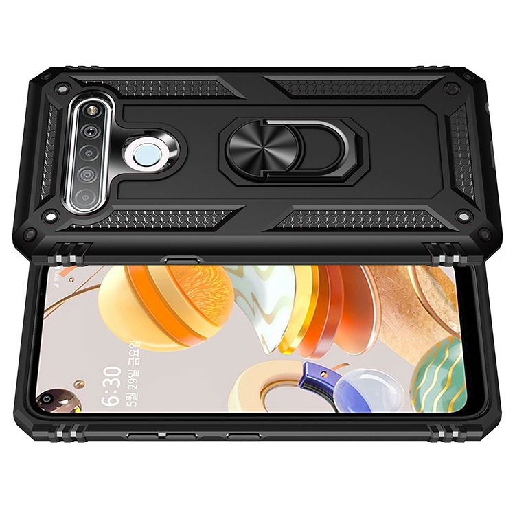 Funda Protectora TPU + PC para LG Q61 con Soporte Giratorio 360 Grados (Negro)